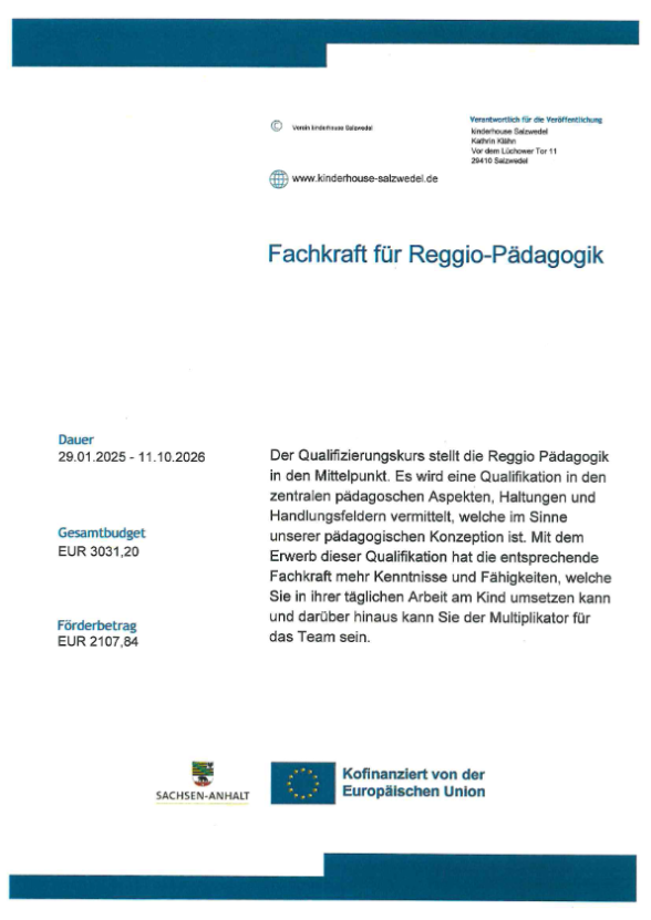Unsere Kindertagesstätte befindet sich in den Räumen des ehemaligen Fernmeldeamtes in Salzwedel. Nach dessen Umbau stehen im Bereich des Erdgeschosses sowie des I. OG Räume mit einer Gesamtfläche von ungefähr 670 m² zur Verfügung. Das rückseitig gelegene Außengelände erstreckt sich auf eine Fläche von ca. 1.700 m². Für die Eltern und Besucher des Hauses halten wir einen weiträumigen Parkplatz vor.